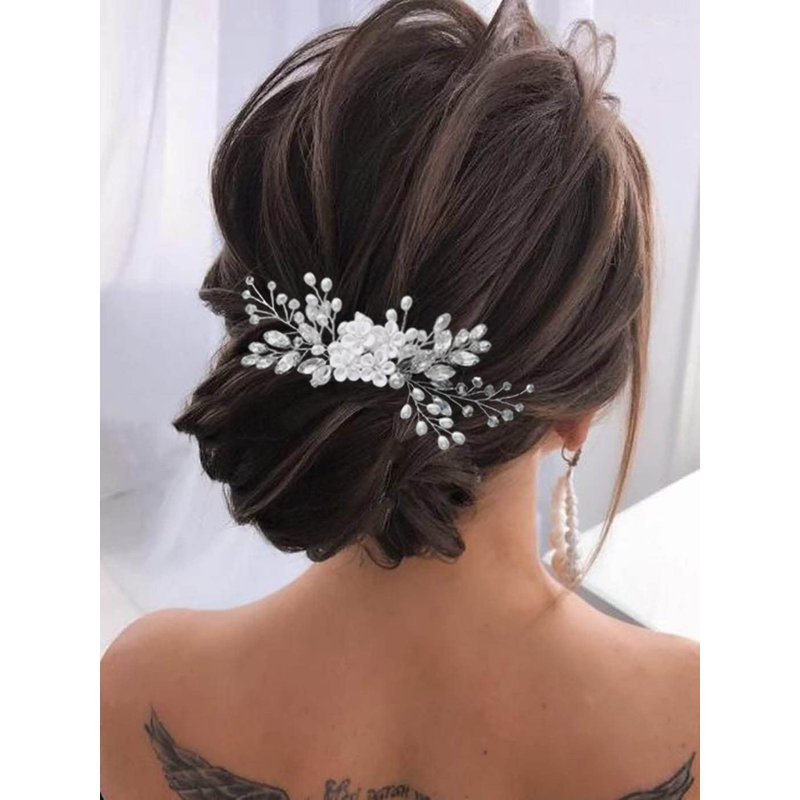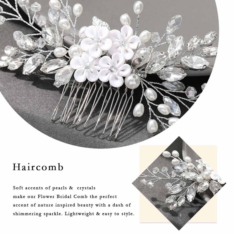 Unsutuo Flower Bride Wedding Hair Comb Silver Crystal Bridal Hair Accessories Pearl Hair Piece for Women and Girls
