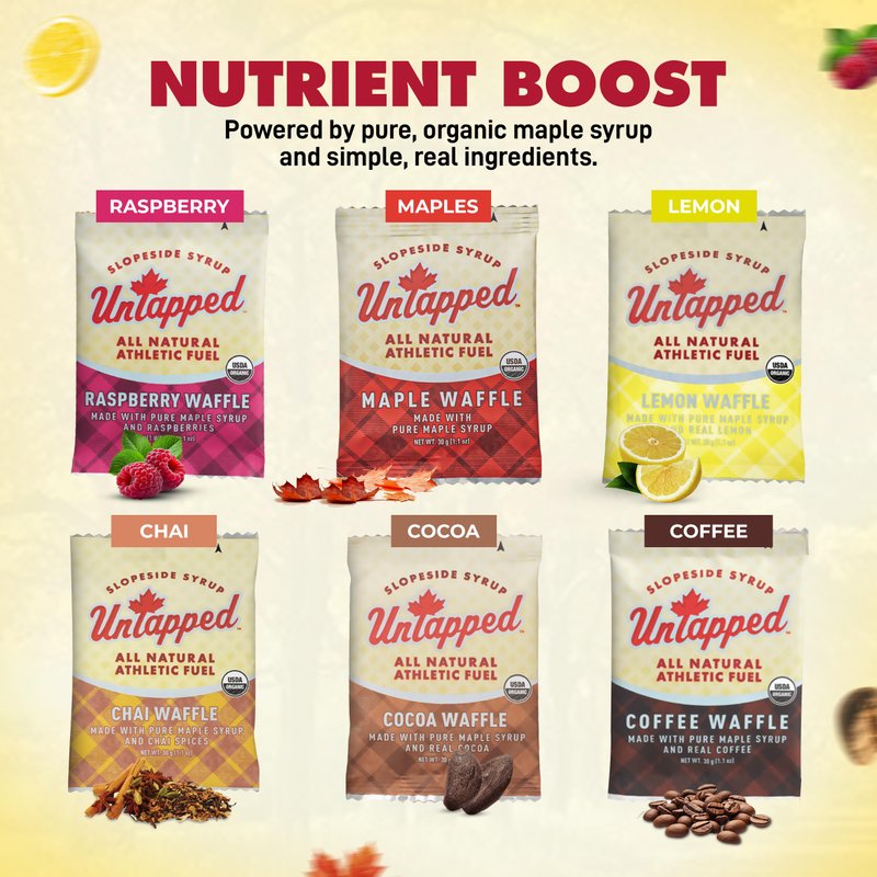 UnTapped is committed to delivering clean, all-natural energy to fuel athletes and active individuals. Known for using organic, sustainably sourced ingredients, UnTapped is trusted for its high-quality products that support both endurance and recovery. This sample pack offers a variety of delicious energy gels, stroopwafels, and hydration mixes, all crafted to deliver consistent, long-lasting energy and promote faster recovery. Inside, you'll find five energy gel flavors like Maple, Salted Raspberry, and Salted Cocoa, formulated with natural, low-glycemic maple syrup to provide the steady energy needed for endurance events or extended workouts. The sample pack also includes six vegan stroopwafels—flavors like Maple, Chai, and Cocoa—perfect for a quick, satisfying energy boost. Additionally, the three hydration mixes in refreshing flavors such as Lemon Tea and Grape are packed with essential electrolytes to aid in muscle recovery and prevent cramping during physical activities. Rich in natural antioxidants from the maple syrup, these products support overall wellness by reducing inflammation and promoting a healthy recovery. The convenient, travel-friendly size of the individual maple syrup packets makes it easy to take this comprehensive nutrition with you, whether you're training, traveling, or competing.