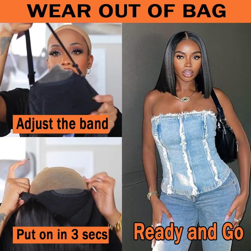 - Wear and Go Wig. Real glueless human hair wig,10 seconds to wear for beginner-friendly,quick and easy,no skills needed at all.