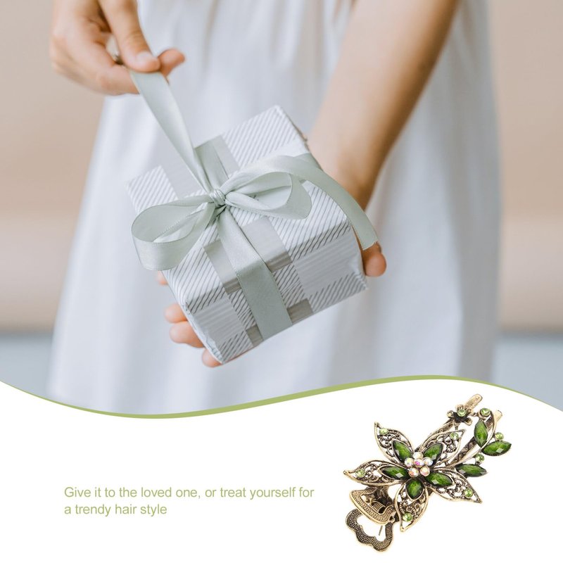 Uonlytech Girl Hair Clips Flower Crystal Hair Clip, Sparkly Glitter Rhinestones Hair Clips French Elegant Hair Barrettes Hair Jewelry for Women Girls, Green French Hair Pin
