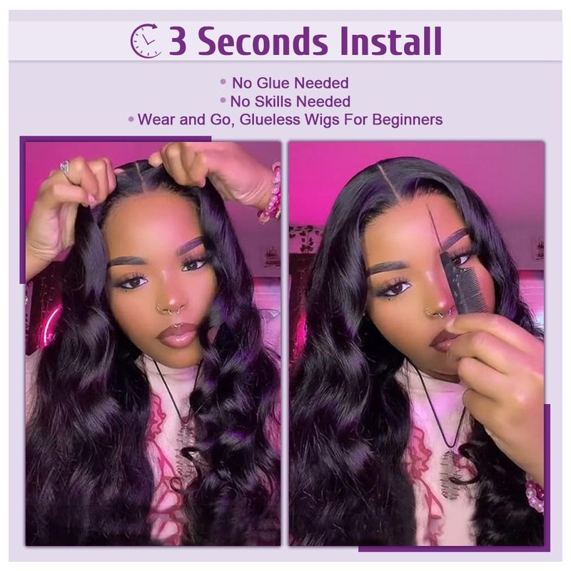 - Glueless Wigs Human Hair: Wear and Go Glueless Wigs human hair pre plucked, Only takes 3 seconds to wear, No Skill Needed Friendly for Beginners, no glue no gel needed, more convenient and quickly, Save more time