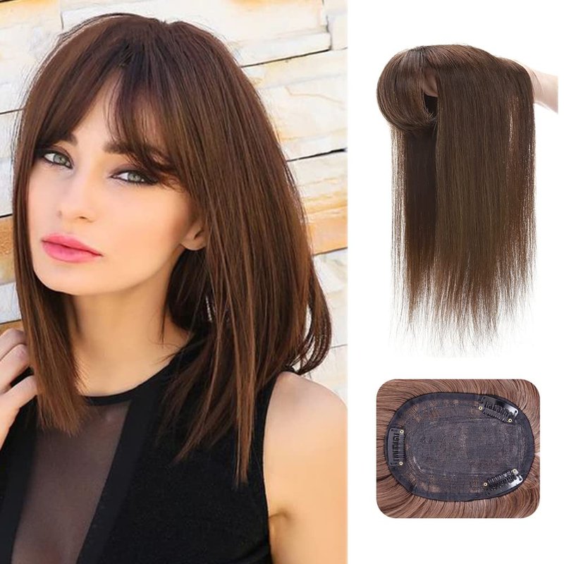 Uotp Synthetic Hair Crown Topper Closure Women Top Toupees Silky Straight Hair Topper Hairpieces Hair Bang with Clips Hair Extensions (14" Straight, Light Brown)
