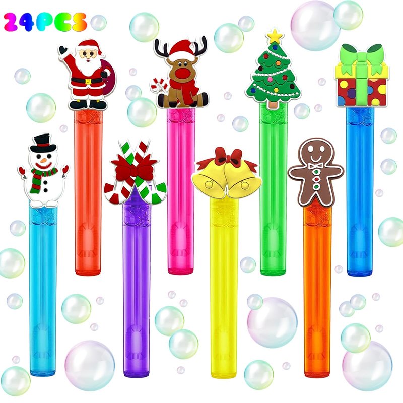 uoyoi Christmas Party Favors,24Pcs Christmas Bubble Wands for Kids,Xmas Bubble Wand for Christmas Birthday Party Supplies,Classroom Prizes Pinata Goodie Bag Stuffers Gift