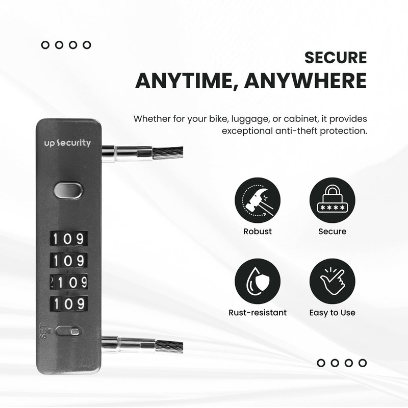 UP Security Cable Lock with Combination Lock, Storage Containers and Outdoor Gear, Helmet Scooter Bike Locks, Heavy Duty Anti Theft, Combo Gate Locks for Fence Locker (Gray, 12-inch (30cm) Cable)