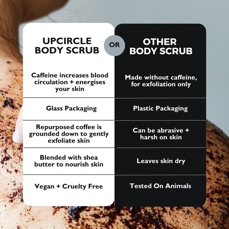 - VEGAN, ETHICAL, SUSTAINABLE: Reused, repurposed, reloved - this scrub is made with top-quality Arabica coffee grounds sourced from artisan coffee shops.