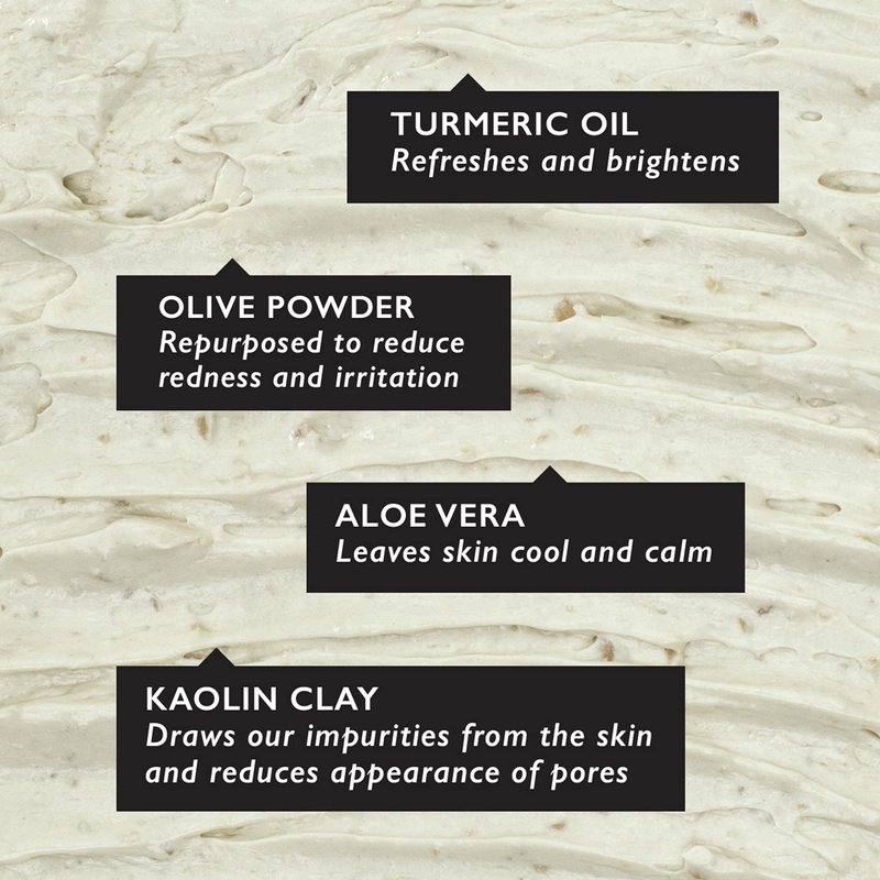 - NATURAL, CLEAN, CRUELTY-FREE AND 100 PER CENT VEGAN: Reused, repurposed, reloved. This face mask is made with the finely-ground powder of discarded olive stones, a natural by-product of the olive oil industry and a powerful anti-inflammatory.