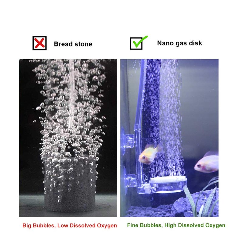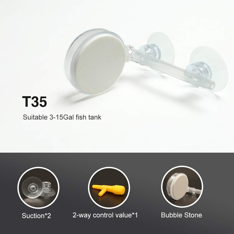 - 【3 Accessories】 This fantastic aquarium stone kit includes a 35mm Nano air disc stone, 1 control valve, 2 suction cups. suitable for 3 to 15 Gal aquarium and 1.5-3W air pump.