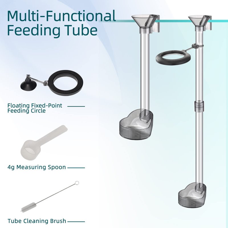 - 🐠【Package Included】The fish and shrimp feeding tube kit you receive includes: 2* Feeder Tube,1*Feeding Ring,1*Tube Cleaning Brush,1*4g Measuring Spoon.