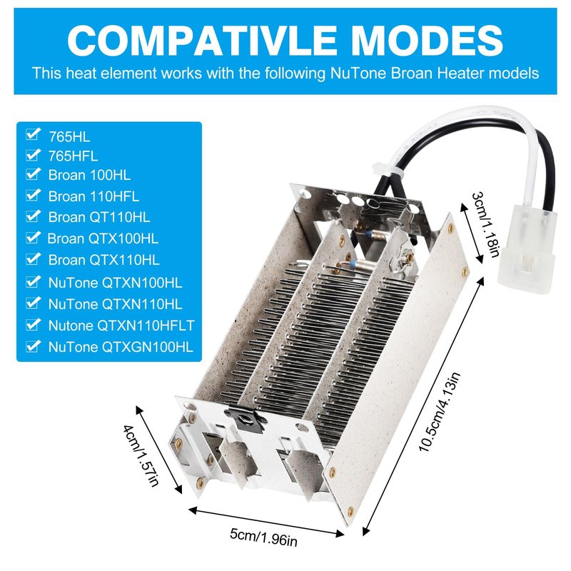【EXCELLENT COMPATIBILITY】The heating element is compatible with S97020888 S97016565. Suitable for the following models: QTXN100HL, QTXN110HL, QTXGN100HL, 100HL, 110HFL, QT110HL, QTX100HL, QTX110HL, 765HFL, 765HL, 100HFL-A, 100HL-A. (Before purchasing, please confirm the model number of the Nu-Tone heater you are fitting)