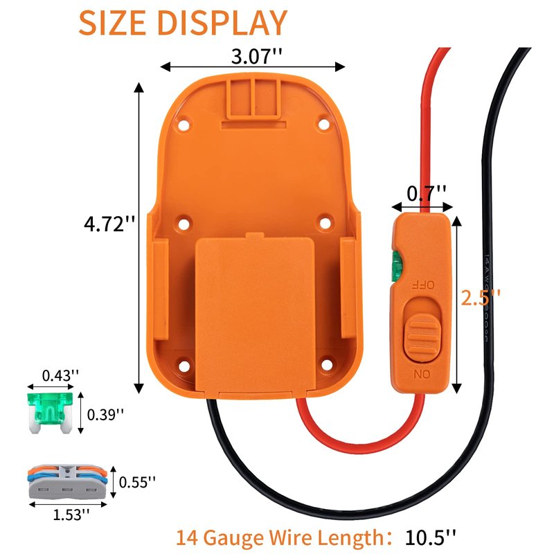 Upgraded 18V Battery Adapter for Ridgid AEG 18V Hyper Battery Adapter All-in-one Design of The Fuse and Switch Power Tool Battery Converter Kit 14 Gauge with Fuses & Wire Terminals
