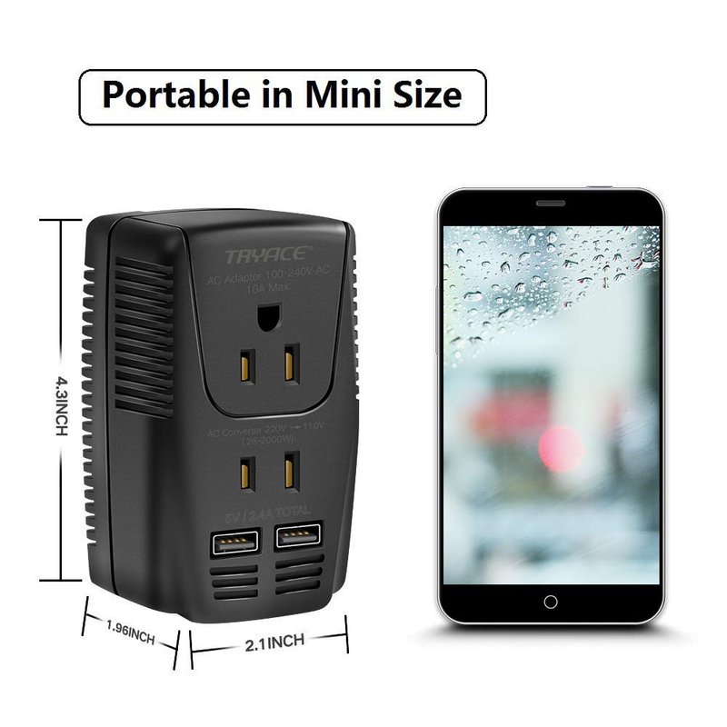 - ✈✈✈【Upgraded Converter for 110-120V Devices】The TryAce voltage converter (2-prong AC Socket) can convert the voltage from 220-240V to 100-120V for American appliances, which is suitable for all brands of hair dryers(except Dyson). The converter is suitable for Conair/ Revlon/ BaBylissPRO hair styler, such as hair straightener/flat iron/curling iron. It can also be used for mechanical control equipment such as electric kettles.