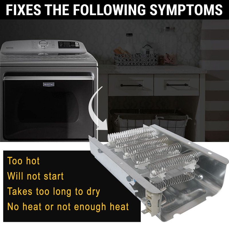 - FIXES COMMON PROBLEMS: If your dryer takes too long to dry clothes, stops producing heat altogether, or overheats, it may be time to replace the dryer heating element, Luckily, replacing part 279838 is easy to do yourself and takes under 45 minutes.