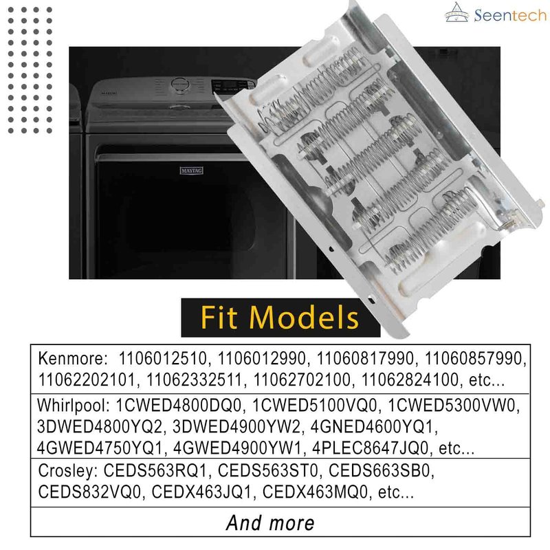UPGRADED 279838 Dryer Heating Element by Seentech, Compatible with Whirlpool & Kenmore Electric Dryers - Replaces 2438 3398064 8565582 AH334313 EXP279838 AP3094254 279837 279838VP 3398064 8565582