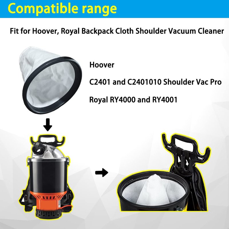 - 【Compatible range】2KE2105000 HEPA cloth bag liner compatible with Hoover C2401 and C2401010 Shoulder Vac Pro Commercial model vacuums and Royal RY4000 and RY4001 backpack style vacuum. The size is the same as the original and fits perfectly
