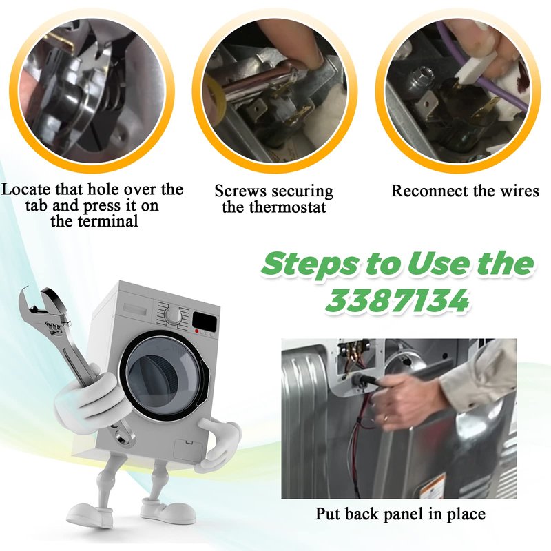 - ✔✔ 【REPLACEMENT PART NO.】: ① 3387134 high limit thermostat replaces: 2011, 306910, 3387134, 3387135, 3387139, ET187, WP3387134VP. ② 3392519 Dryer Thermal Fuse replaces 80005, 694511, 3388651, 3392519, ET401, G4AP0500, WP3392519VP ③ 3977393 Dryer Thermal Fuse replaces 279816VP, 3399848, 3977393, 2651, AP3094244, PS334299, EAP334299 ④ 3977767 Dryer Thermostat replaces 3399693, WP3977767VP, 898078, AP3131941, PS351925, EAP351925.
