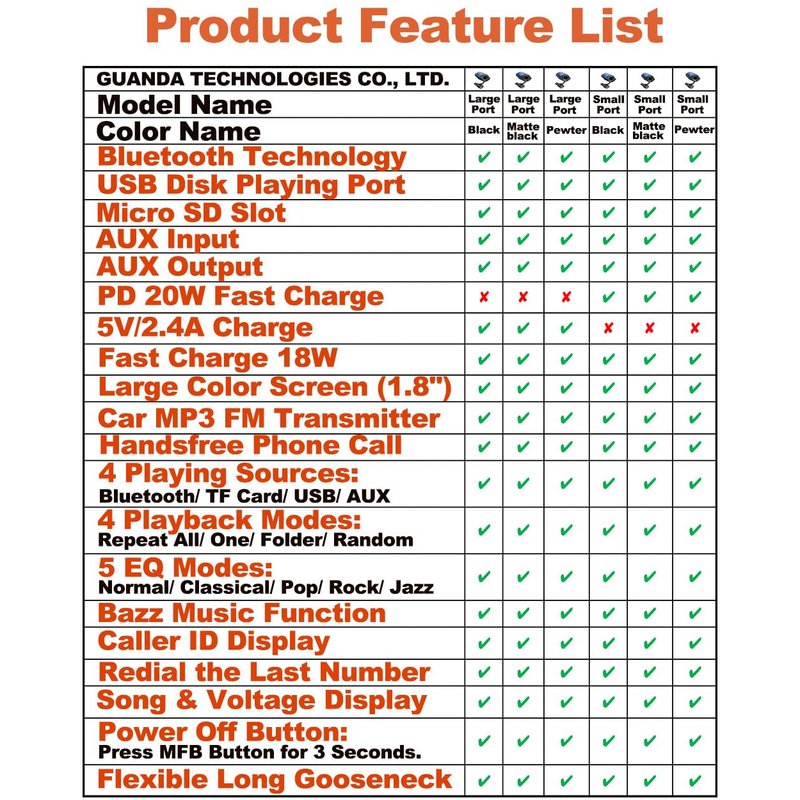 Guanda Bluetooth FM Transmitter for Car Specifications: