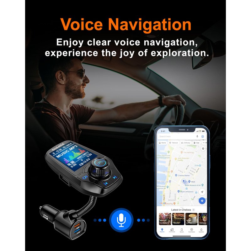 With two USB charging ports on Guanda car Bluetooth FM transmitter, you can charge your phone or other devices simultaneously. No need to worry about power shortages.
