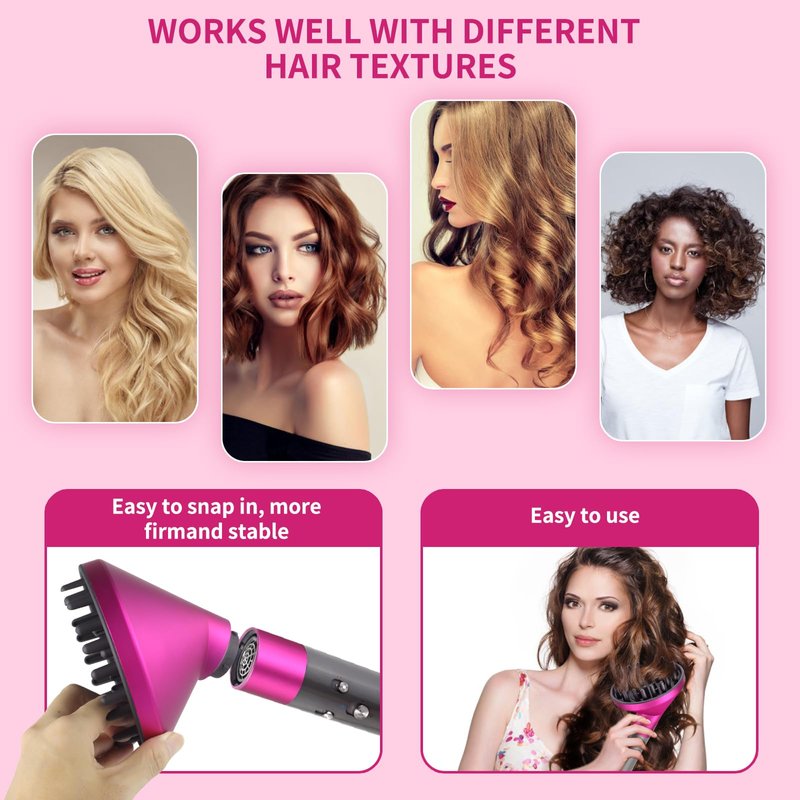 - Elevate your hair styling with our Upgraded Diffuser Nozzle - no adapter needed. Experience smoother airflow, a delicate feel, and refined appearance for salon-quality results at home. Its flexible, lightweight design ensures easy airflow control, suitable for all hair types.