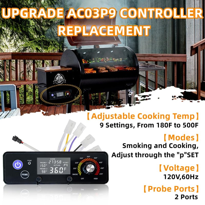 - 👍【𝐏𝐞𝐫𝐟𝐞𝐜𝐭 𝐂𝐨𝐧𝐭𝐫𝐨𝐥𝐥𝐞𝐫 𝐑𝐞𝐩𝐥𝐚𝐜𝐞𝐦𝐞𝐧𝐭】Upgraded digital W/LCD display control board replacement parts AC03P9, PB1100PS1-A003 compatible with Pit Boss wood pellet grill smokers PB440D2/PB1150G/PB850G/PB550G/PB820/Pro1100 Controller.(Note: Not Compatible with Pit Boss Vertical Pellet Smoker/Refridgerator Grill and other brand grill. )