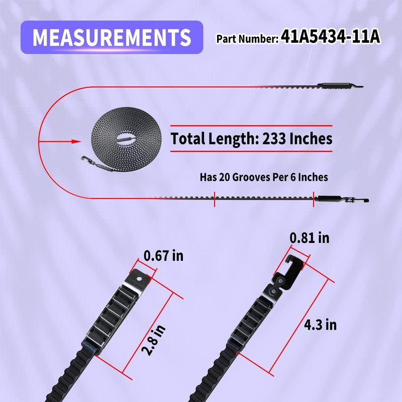 - ✅ Our 41A5434-11A Garage Openers Belt Compatible with LiftMaster & Chamberlain replacement part. Also Know As: 41A5434-1, 41A5434-11, 041A5434-11.