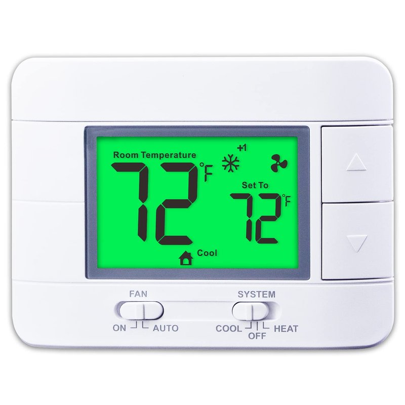 - Non programmable thermostat, multi-stage, 2 heating and 2 cooling, electric or gas/oil configurable. (TIP: before purchasing, check to see if this thermostat is compatible with your old thermostat)