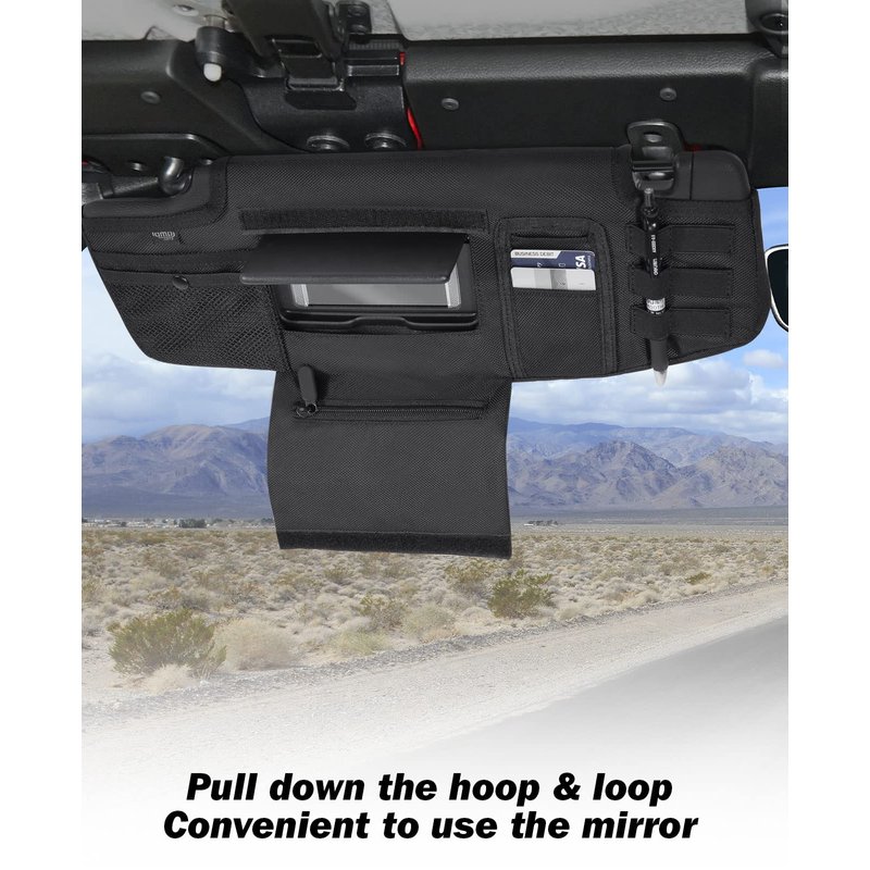 - DURABLE & STURDY: The molle sun visor organizer is made of double-layered 1680D Oxford cloth. Stay organized and within reach while driving. Buy with confidence! QMPARTS Offers a Limited Lifetime Warranty on Products Damaged During Delivery or That Have a Confirmed Manufacturer Defect.
