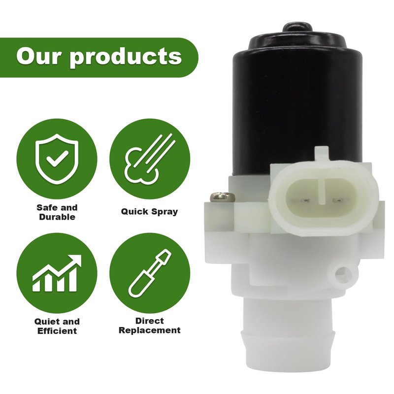 - 【Design Concept】The windshield washer pump is easy to install and has a push fit design and fast spray function, providing strong pressure to pump the washer fluid from the reservoir to the nozzle on the windshield, effectively flushing dirt.