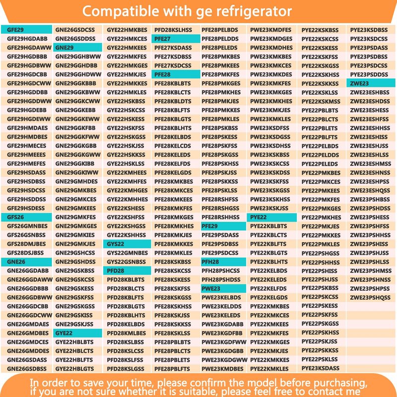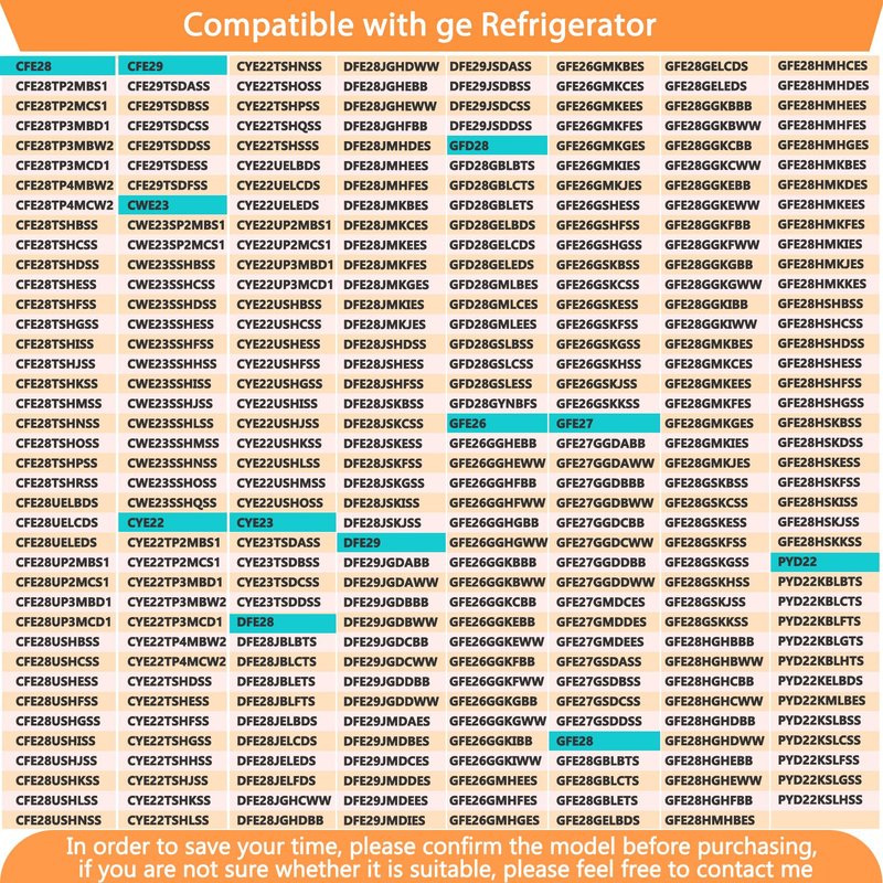 - 【Compatible With ge】: CFE28, CYE22, DFE28, GFE26, GFE28, GNE29, GYE22, PWE23, PYE22, ZWE23, etc. This is only a subset of refrigerator models that are compatible with this product, the picture on the left shows more refrigerator models that are compatible with the picture.