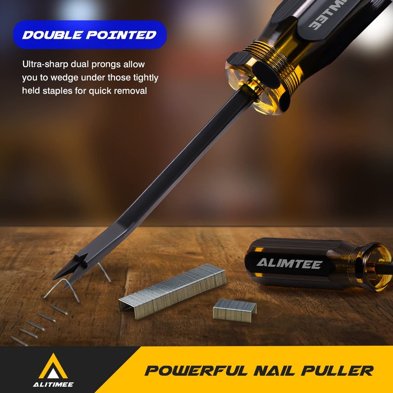 - GREAT DESIGN: Upholstery staple remover ultra-sharp dual prongs allow you to wedge under those tightly held staples for quick removal.