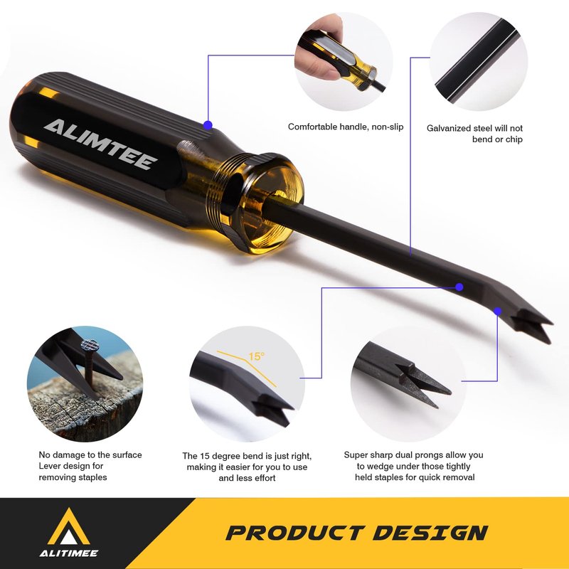 - EASY TO USE:The staple remover tool 15-degree bend is just right, making it easier for you to use and less effort.