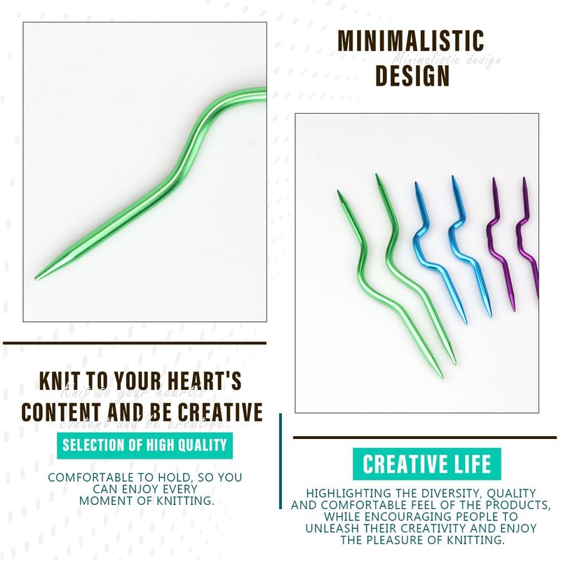 UPIQNG 6Pcs Aluminum Crooked Needles Twist Curved Needles Crochet Hook Crooked Needle Stitch Holders DIY Hand Sewing Knitting Tool,Random Color,3 Sizes