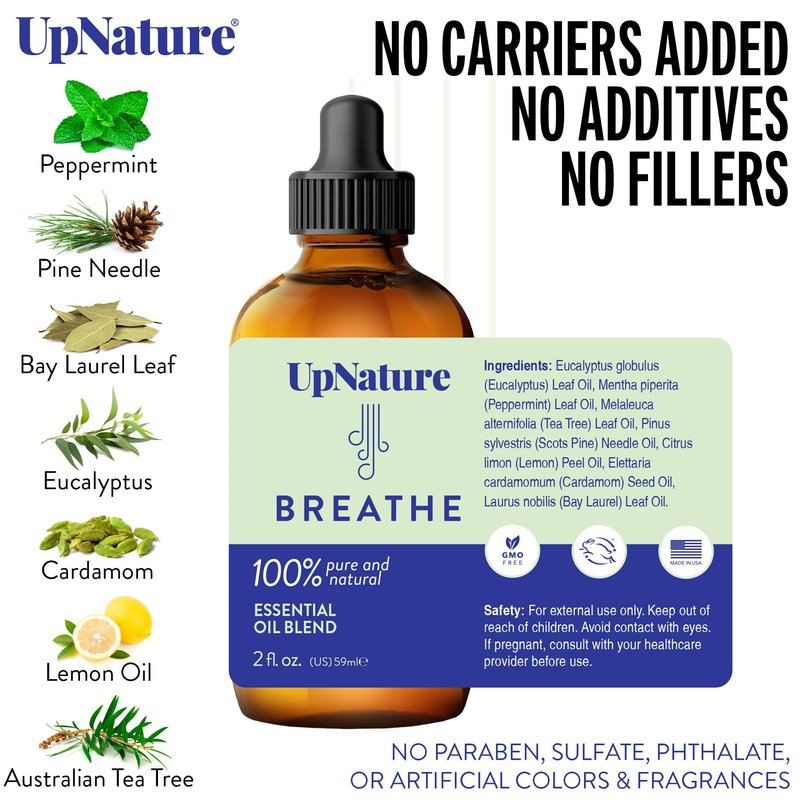 UpNature Breathe Essential Oil Blend - Essential Oils for Diffusers for Home and Humidifiers - Aromatherapy Oils for Breathing Comfort, 2oz