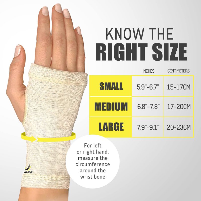 UptoFit - Copper Wrist Compression Sleeve, Hand Brace Wrist Support for Carpal Tunnel, Wrist Brace for Tendonitis, Breathable Copper Compression Sleeve, White/Skin in Small, Pack of 1