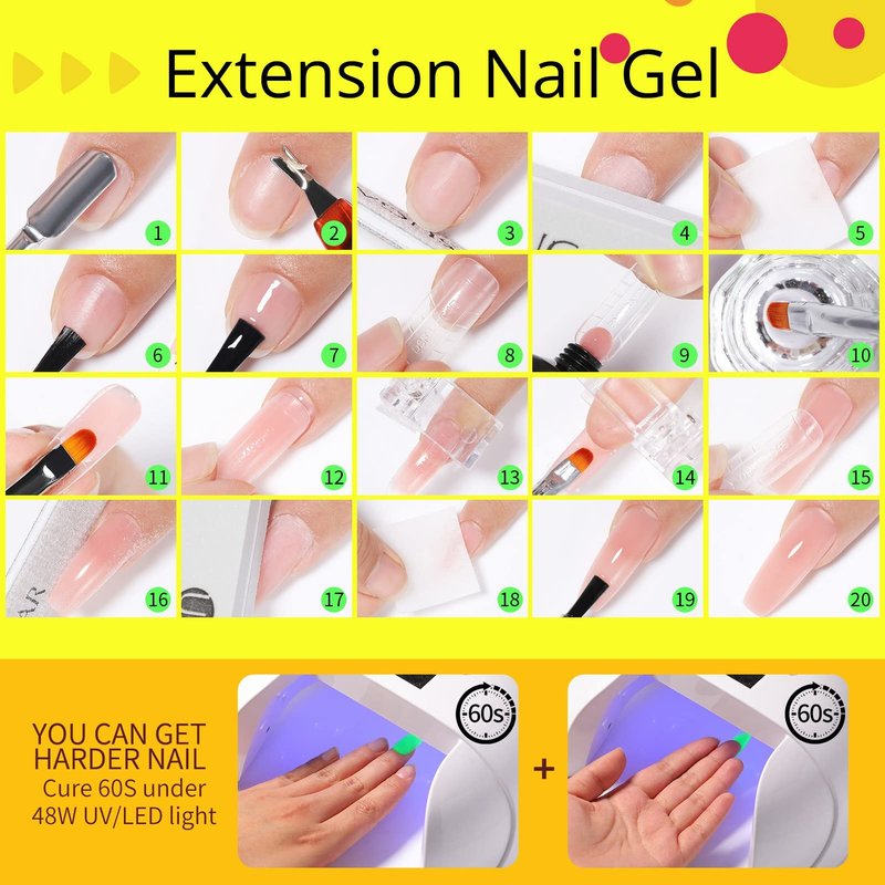 - 【Quick Building and Long Lasting 】- The poly nail gel can build beautiful nail extensions in 3 minutes even for beginner! Lasts up to one month when applied appropriately. With a proper application, 21 days + wearing is attainable. Include 6 PCS 15g Poly Extension Nail Gel in 6 different colors, fashionable and stylish, perfect neon space collection for party and holiday.