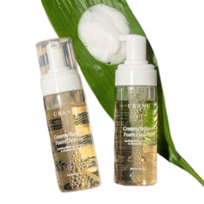 URANG] Creamy Bubble Foam Cleanser 5.07 Fl Oz | COSMOS NATURAL Certified Calendula & Chamomile Extract - Soften and Moisturize Skin | Vegan Face Wash For All Fmaily Members | Bubble Skincare