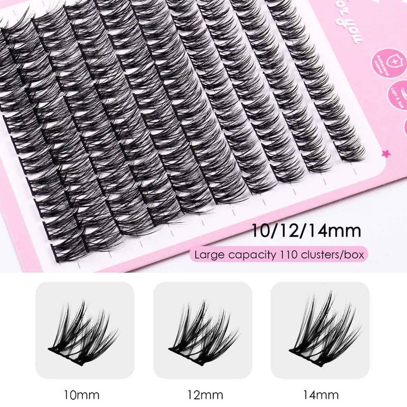 - 【Comfortable and Reusable】Individual DIY eyelashes with lightweight, natural-length of these fake eye lashes are comfortable to wear. Makes your eyes look deeper and more attractive. Assorted of 3 different lengths(10/12/14mm), 110 clusters, DIY freely, suitable for most eye shapes.
