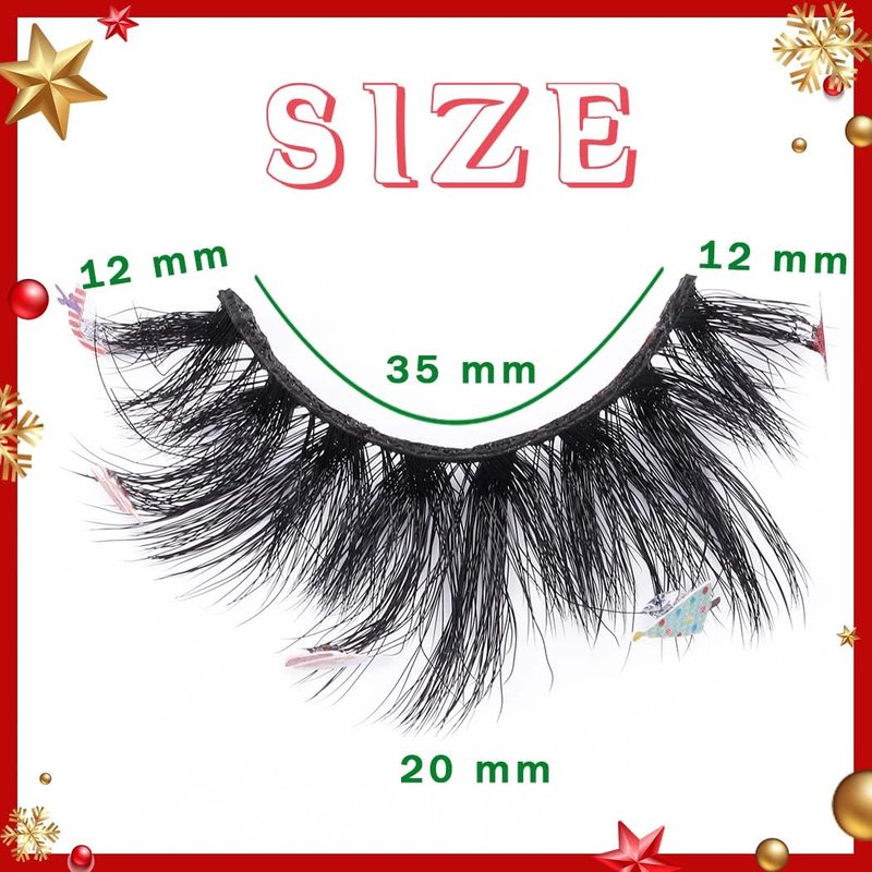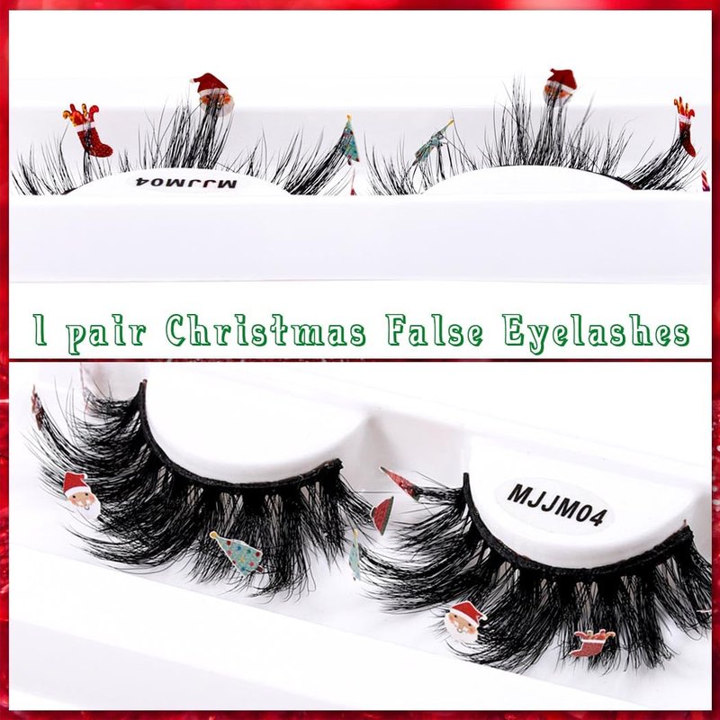 Uranian Mink Lashes D Curl Strip False Eyelashes for Christmas About us Uranian focus on beauty supplies and daily accessories. Committed to bring high-quality products and good services to customers. Hope to bring you a good shopping experience. Features 1. 1 pair, stick with cute decorations, such as snowman, candy cane, Xmas tree, Christmas hat. 2. 10/10 handmade, vegan and cruelty free. 3. Soft and skin-friendly, durable and reusable. 4. Natural look and light weight, Easy to wear. How to use 1. Remove the eyelashes from the box, trim the eyelashes to fit your eyes. 2. Adjust the false eyelashes to fit your eye curve. 3. Apply eyelashes glue to the root of the false eyelashes. 4. When the glue dries slightly, press the fake eyelashes firmly against the roots of the natural lashes.