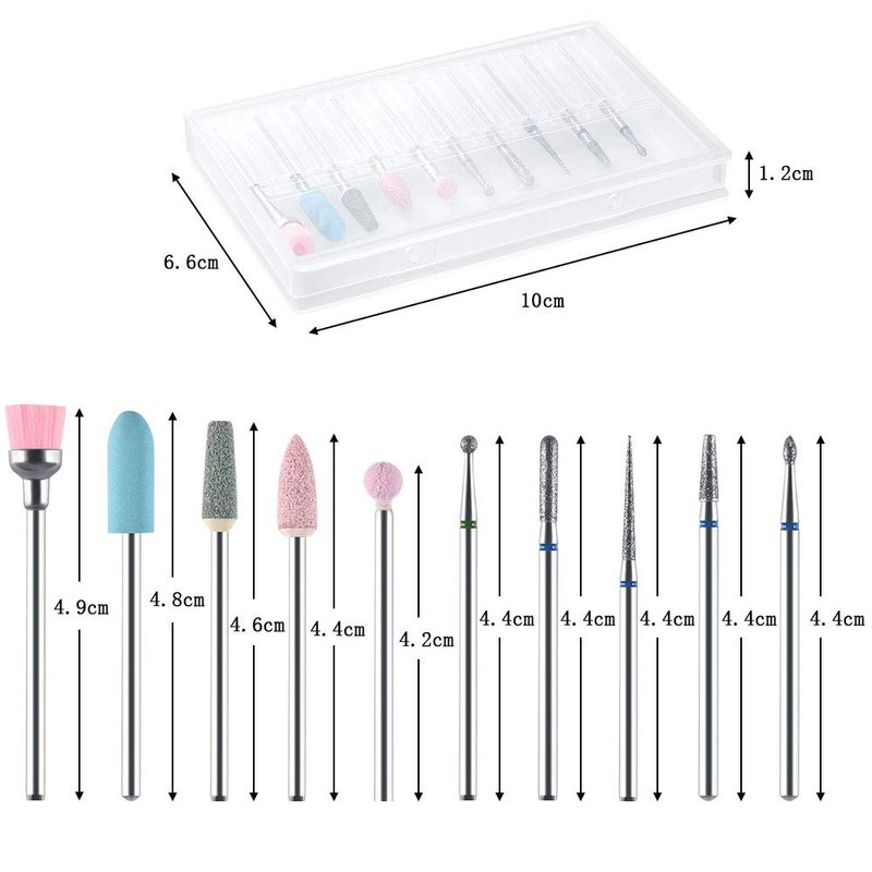 - 【Professional Nail Drill Bit Set】URAQT nail drill bit set includes 10 different styles of drill bits, come with a storage holder, can meet a variety of manicure needs, allowing you to experience the fun of DIY nail art.