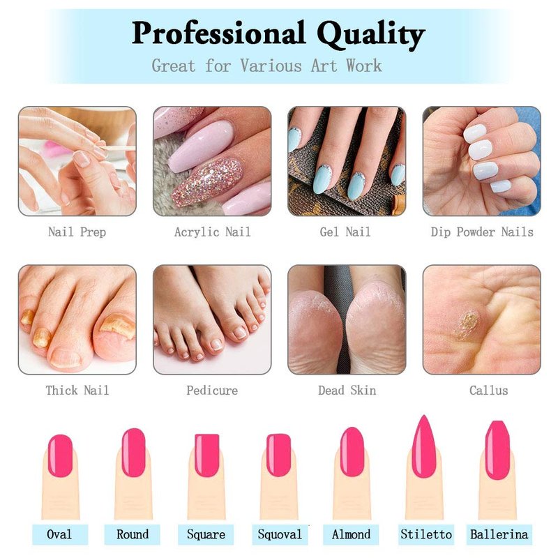 - 【Multifunctional】Electric nail drill bits can be used to polishing gel acrylic nails, remove dead skin, barbs, pretreatment, sharpening, grinding, carving, nail removal, etc., an ideal tool for manicurist or beginner.