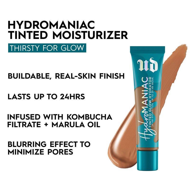 Urban Decay Hydromaniac Dewy Foundation (55 Medium Deep Neutral), Hydrating Tinted Moisturizer for Dry Skin, Buildable Medium Coverage, Non-comedogenic, Vegan, Cruelty-free - 1.1 fl oz