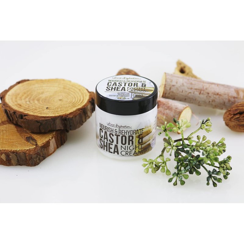 - ABOUT THE PRODUCT: Urban Hydration Nourish and Rehydrate Castor and Shea Night Cream is a gentle, all natural product for all skin types. This night cream will help leave your skin bright and balanced by fighting acne, fading dark spots, and smoothing skin overnight, so your skin feels as refreshed as you in the morning! Safe for nightly use. Contains (1) 2 Fl Ounce Jar of Night Cream