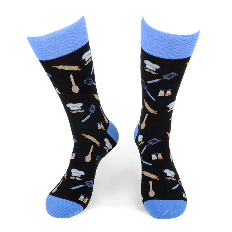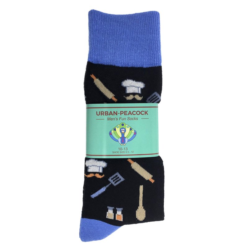 Urban Peacock Men's Novelty Fun Crew Socks for Dress or Casual - Multiple Patterns Multi-Pair Options (Chef - Black with Blue, 1 Pair)