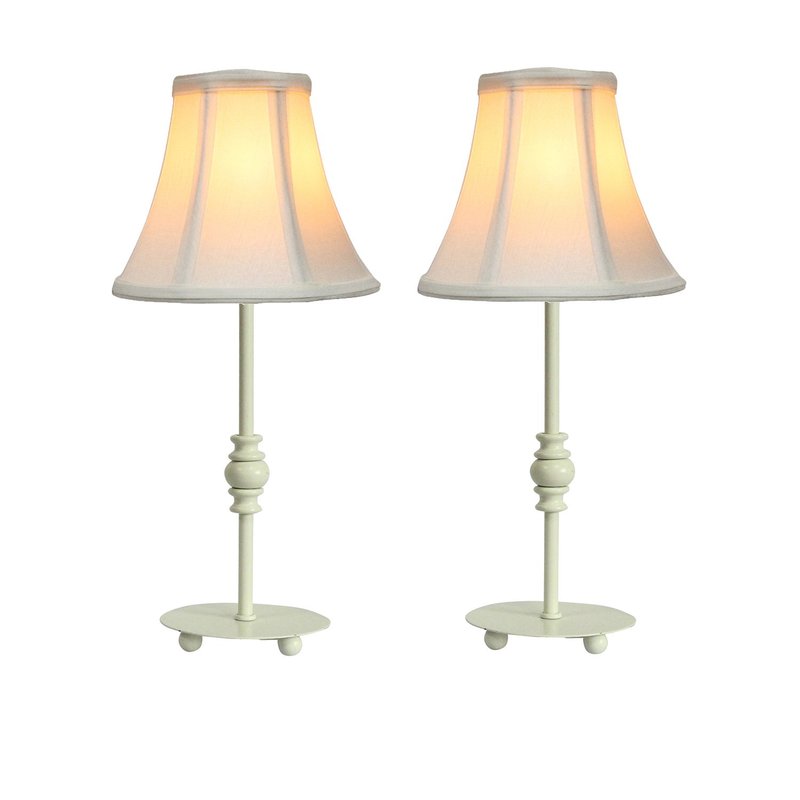 - Set of 2 Urbanest Modern Style Mini Accent Lamp; Lamp base has an antique white finish