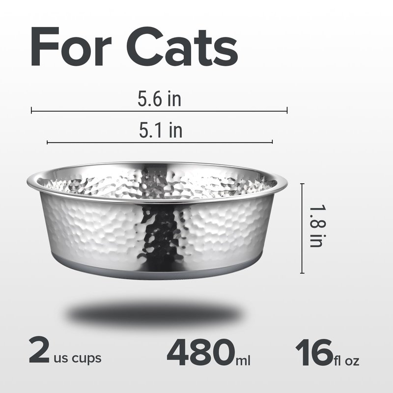 URBUDDIES 2 Pack Hammered Stainless Steel Cat Bowls, 2 Cup, Gray Bottom