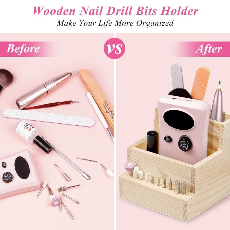 - 【Made of High-Quality Materials】 This nail drill bit holder is made of environmentally friendly wood, with a smooth surface coating without burrs and will not easily crack, making it very durable and sturdy.