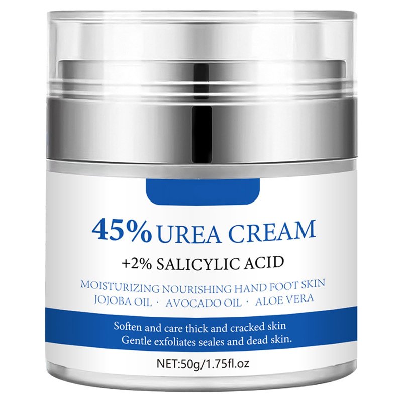 - Efficient and gentle moisturization: Our urea cream contains 45% urea, an excellent ingredient for addressing hand and foot problems. Enriched with glycerin,2% hyaluronic acid, and other moisturizing ingredients, our cream effectively hydrates, softens, and repairs dry and chapped skin. It improves roughness, restoring smoothness and softness to your skin