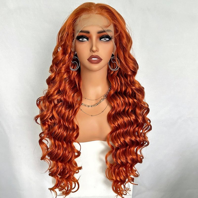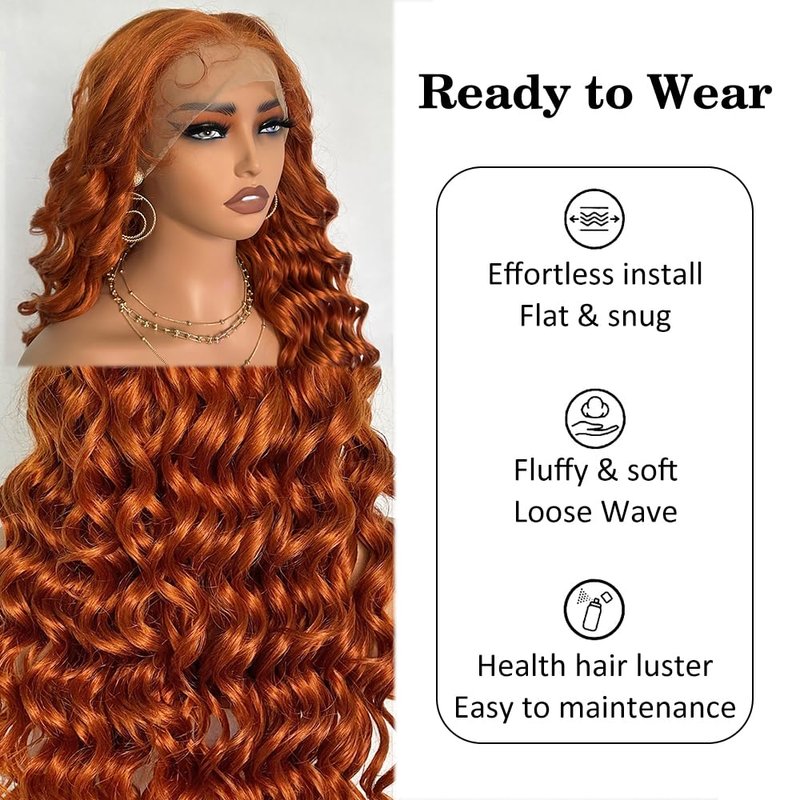 - 【Magic Wig Info】 30 inches long loose wave lace frontal wigs, just about 0.6lb, silky and soft. Color is Copper Brown