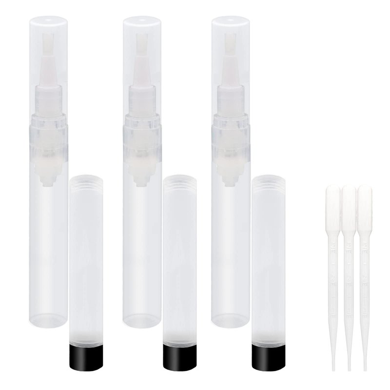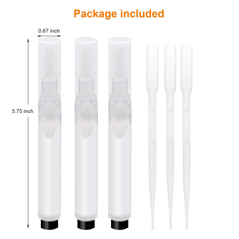 URGINO 3-Pack 6ml Real Refillable Cuticle Oil Pens, Reusable Empty Pen to Easy Refill Jojoba Oil/Nail Oil/Hair Oil, Single Hand Press Transparent Cosmetic Container Pens Applicator