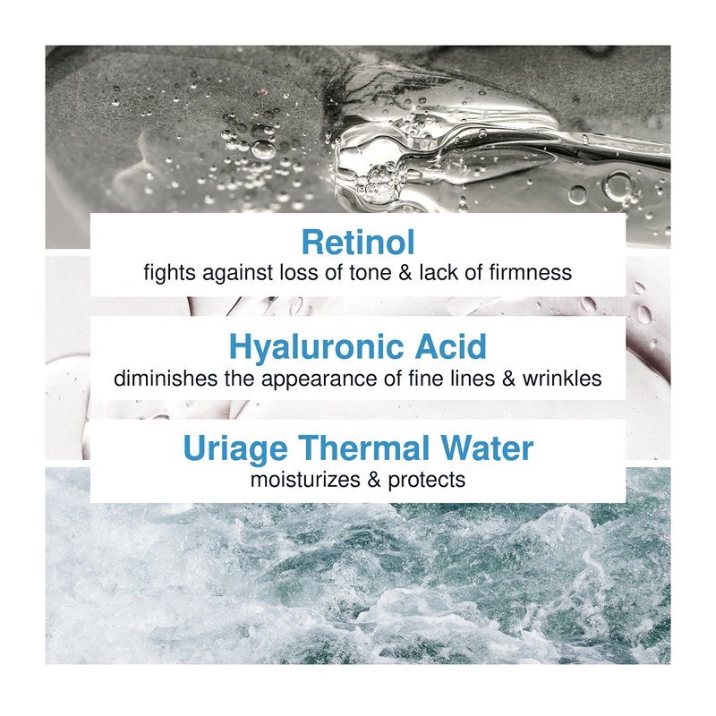 This smooth cream acts on both signs of aging and daily aggressions damaging the skin: blue light, UV rays, pollution, stress, fatigue... Enriched with moisturizing active ingredients, the skin is perfectly hydrated and supple. Reduces the appearance of fine lines and wrinkles, combats loss of firmness and lack of plumpness, helps prevent dark spots and restores skin vitality and radiance. The skin is protected from pollution and harmful effects from blue light, thanks to BLB. Formulated with Retinol, Hyaluronic Acid, Vitamin C and Vitamin E. With Uriage Thermal Water in the heart of all Uriage formulations, our different products are isotonic, thanks to their high concentration of minerals and trace elements, as well as highly moisturizing, thanks to its composition close to NMF (Natural Moisturizing Factor). They all have a high amount of calcium, which provides a soothing effect to the skin, and a combination of Copper & Zinc, which favors the healing of the tissues. Their richness in manganese & magnesium guarantees antioxidant protection and the action of silicon softens and create a permeable film that retains water and maintains the correct hydration of the epidermis.