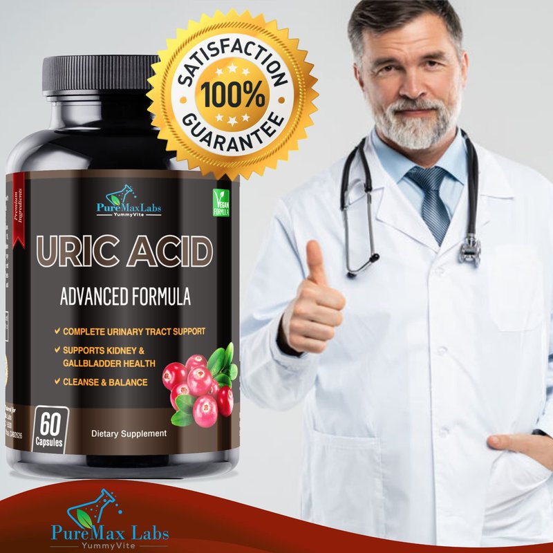 PureMax Labs Uric Acid Advanced Formula helps balance Uric Acid levels and supports kidney, liver and urinary tract health.